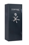 Cassaforte per custodia armi o custodia valori con chiusura elettronica, costruita secondo gli standards della normativa ANIA grado “A” si distingue per estrema robustezza, raffinati interni in pregiato tessuto color champagne, decorazioni, meccanismi a chiusura automatica, finiture dorate degli apparati di comando