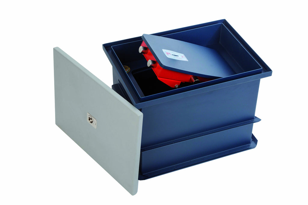 Cassaforte con apertura dall’alto, adatta all’inserimento sotto il livello del pavimento.