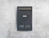 Frontale da incasso in alluminio anodizzato con elemento mobile. Disponibile nei colori verniciato grigio antracite Ral 7016e anodizzato argento. (Kit di 4 murature in dotazione).