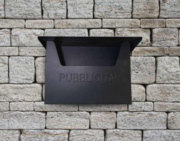 Cassetta per la pubblicità con tetto di formato maxi in lamiera elettrozincata disponibile nel colore grigio antracite Ral 7016.