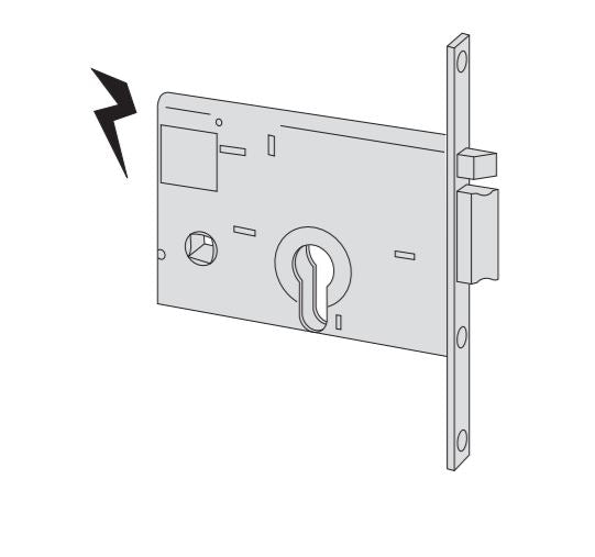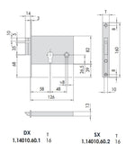 Elettroserratura per fasce, da infilare, entrata 60 mm, frontale 16 mm, altezza corpo 82 mm, scrocco autobloccante.