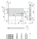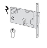 Elettroserratura per fasce da infilare, frontale 16 mm, con scrocco reversibile, altezza scatola 77 mm.